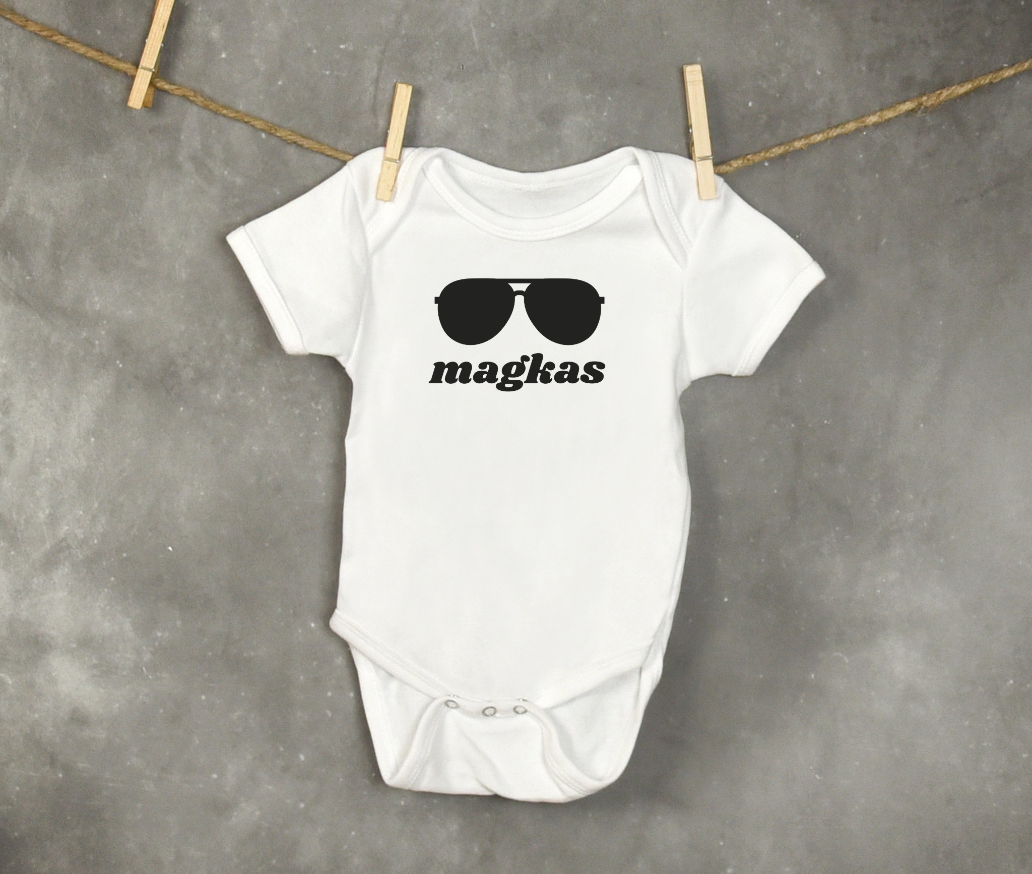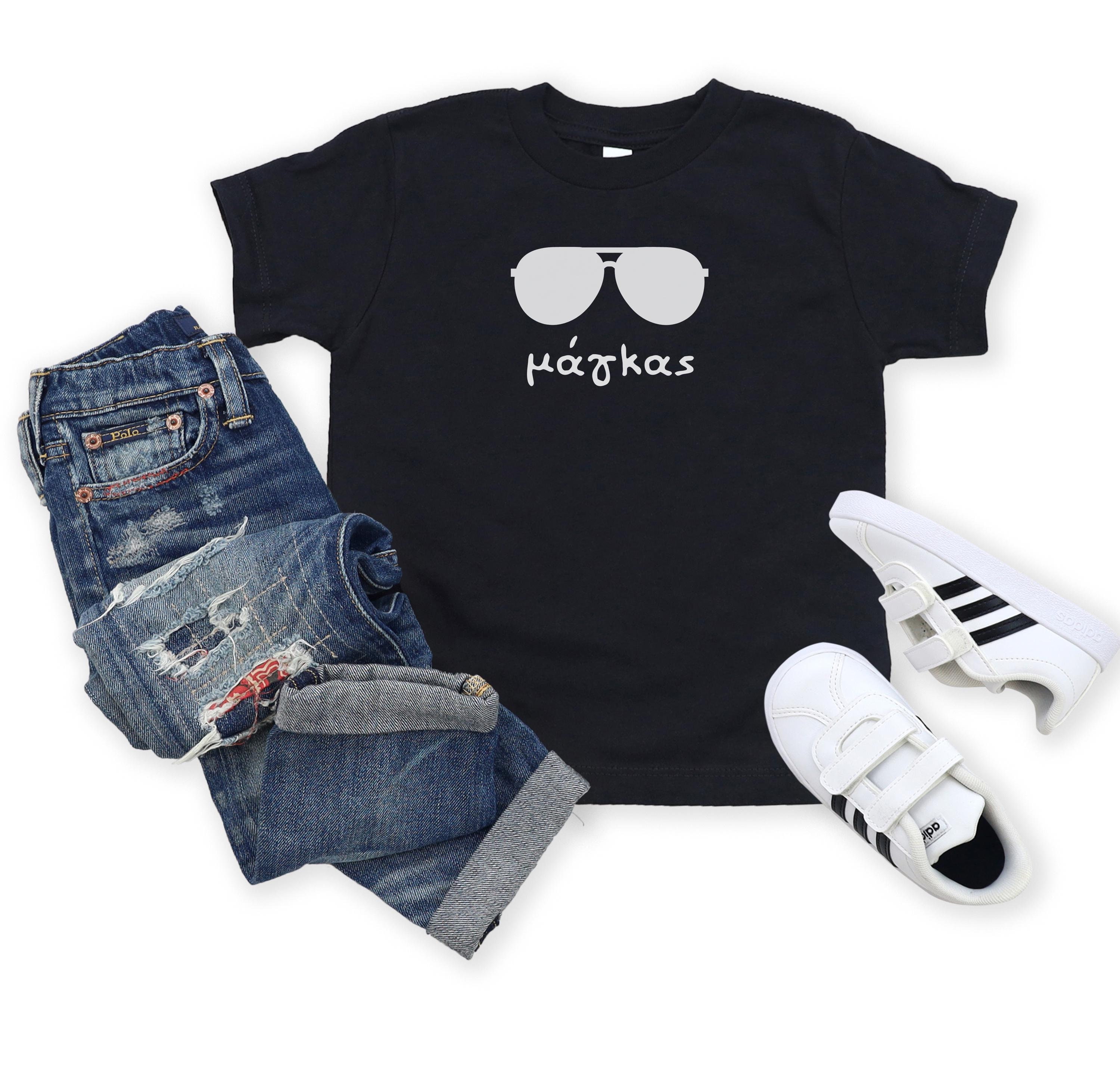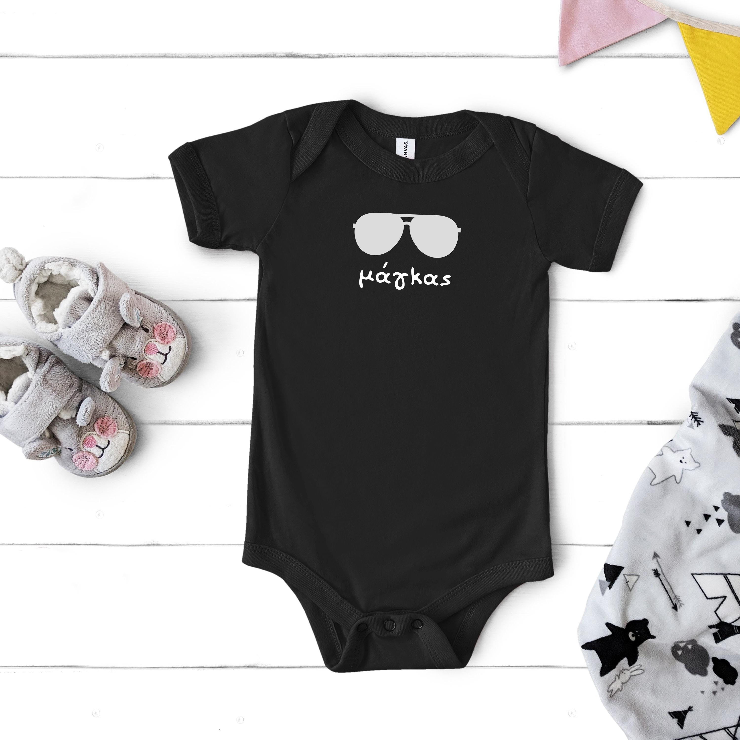 Super cute "magkas" infant short sleeve onsie or t-shirt for the little man in your life. Magkas is Greek for "cool dude." Up your little boy's Greekness factor and wardrobe with this stylish MAGKAS design.