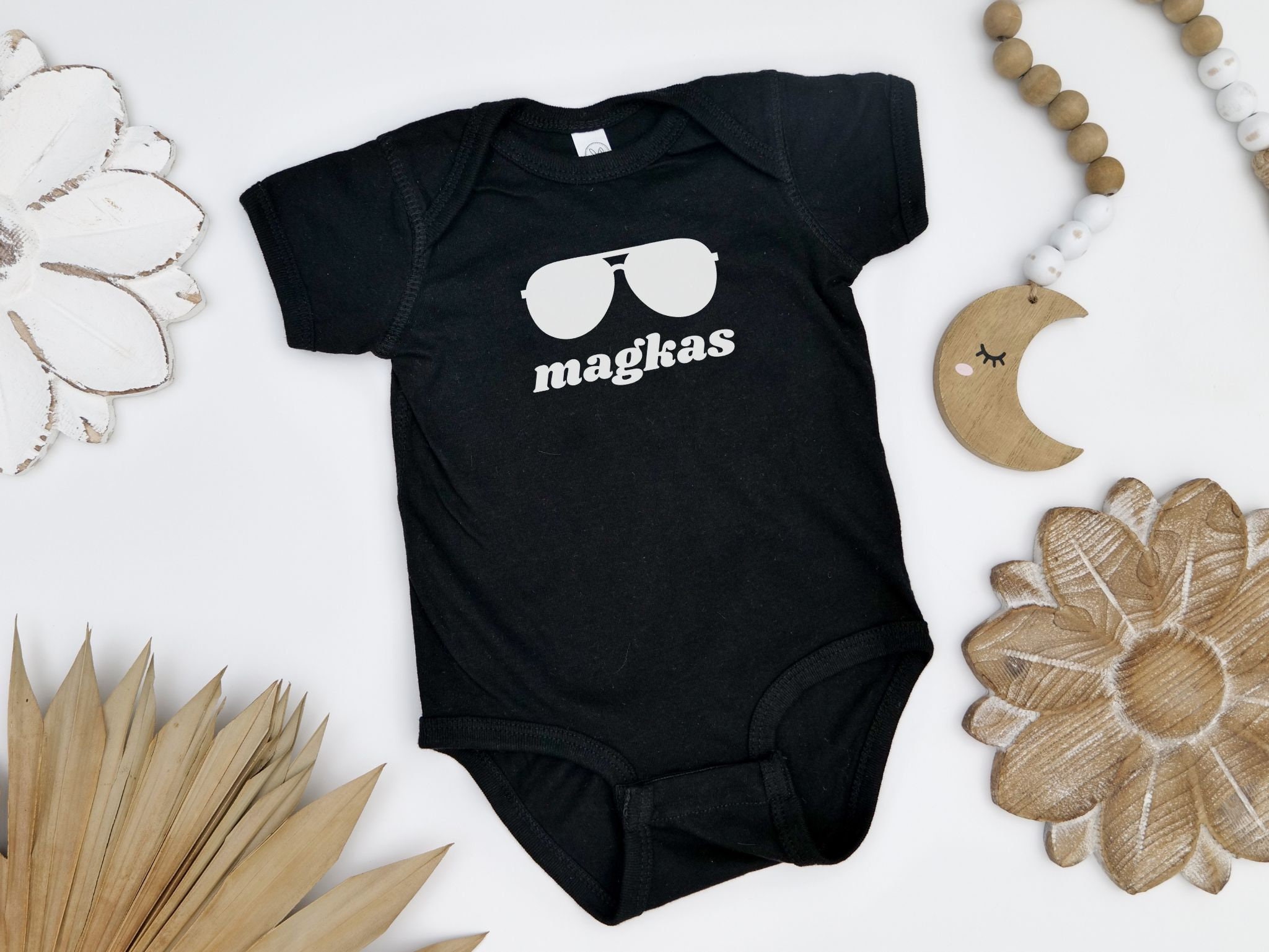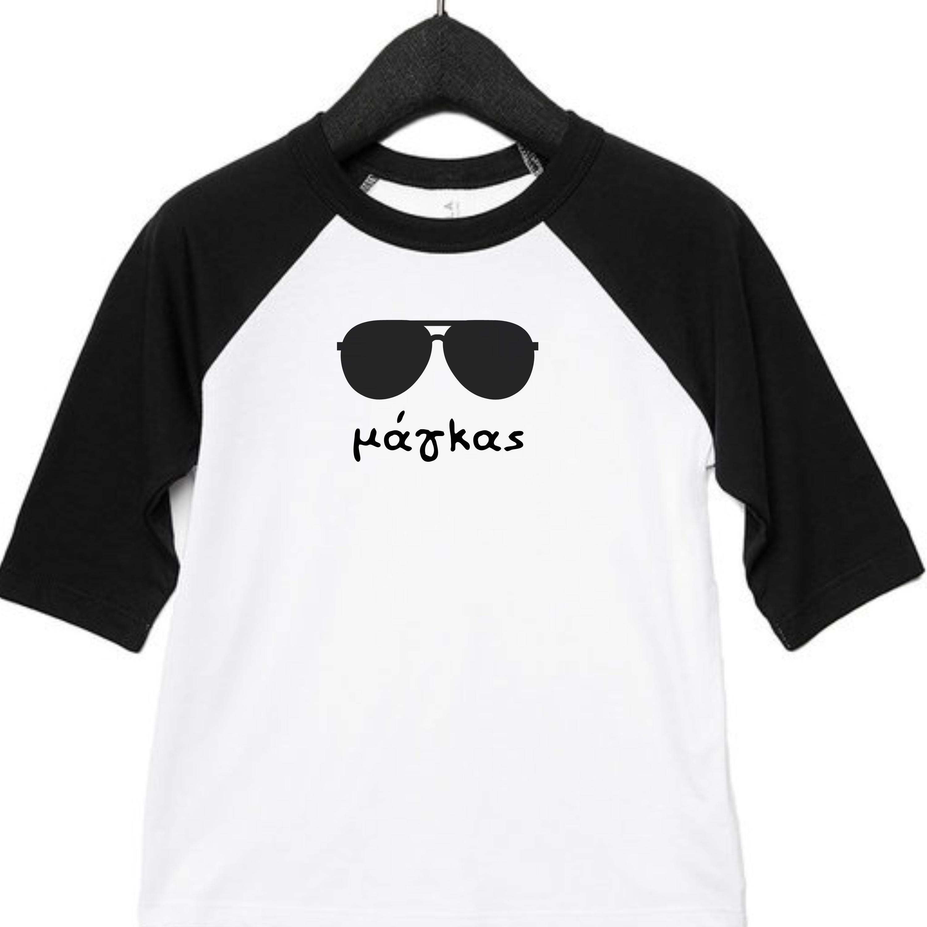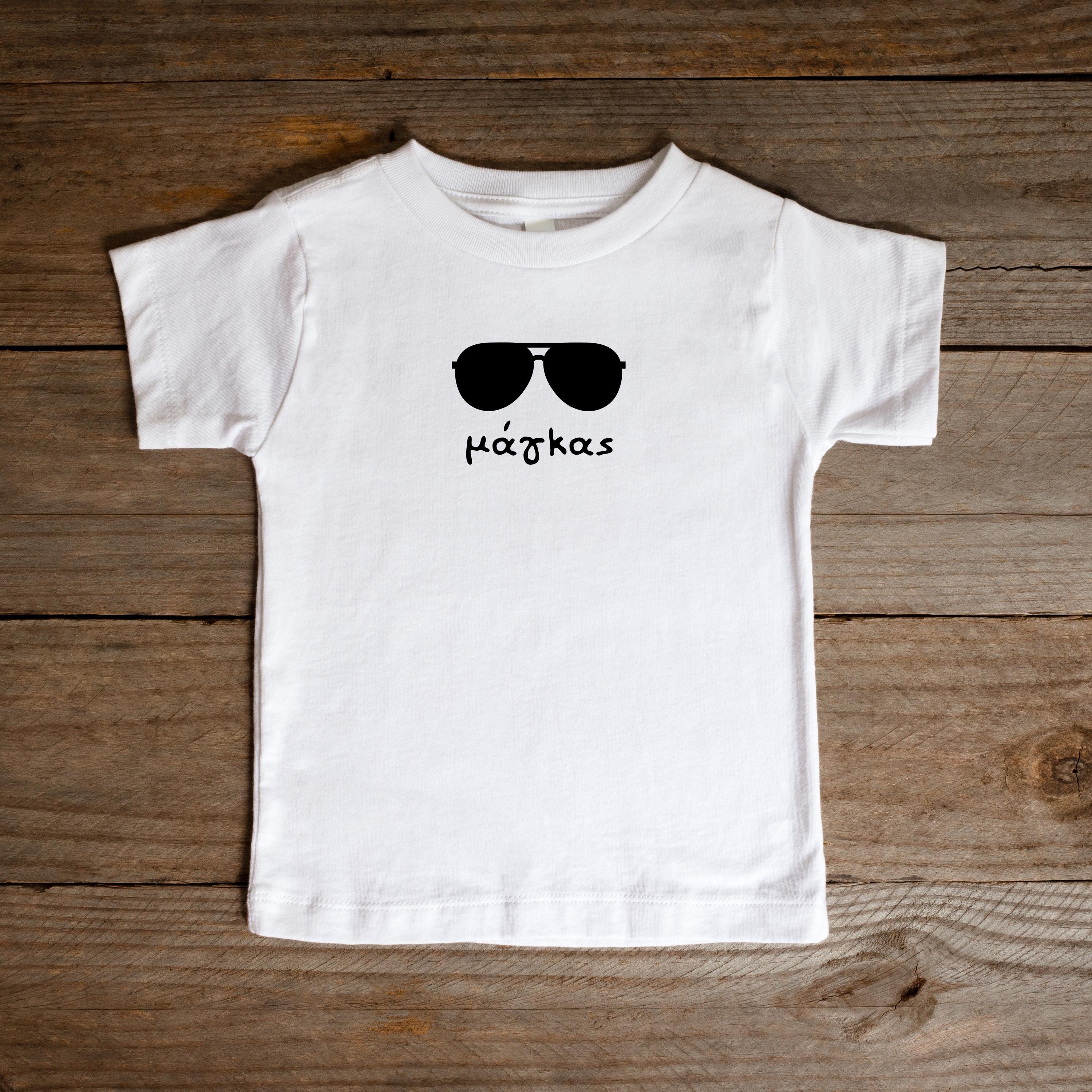 Super cute "magkas" infant short sleeve onsie or t-shirt for the little man in your life. Magkas is Greek for "cool dude." Up your little boy's Greekness factor and wardrobe with this stylish MAGKAS design.