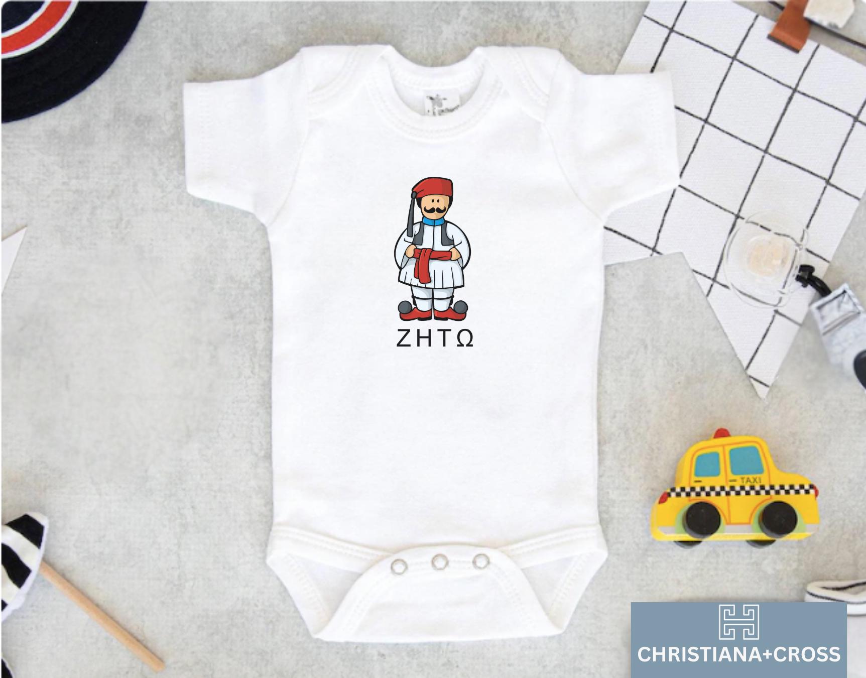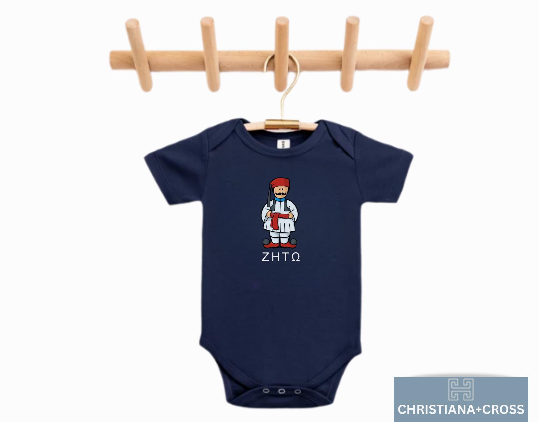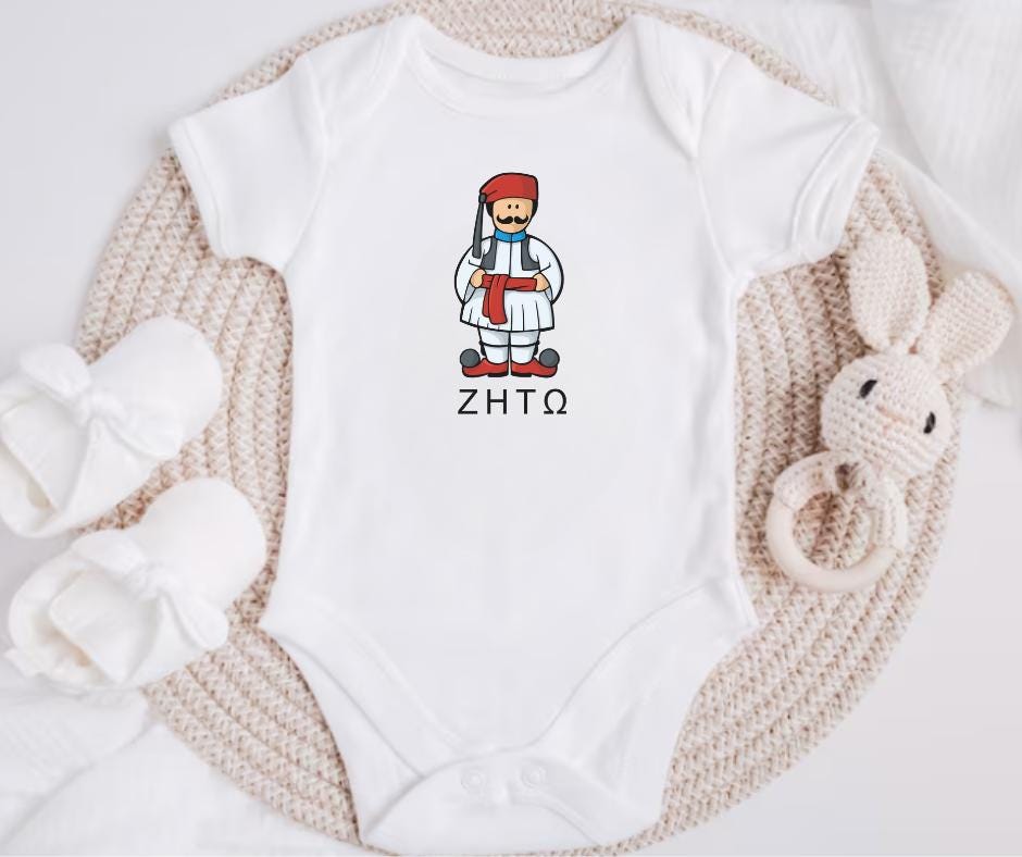 Unique Evzone design with Greek flag details (or "ZHTO" if that's part of your graphic) Perfect for Greek-American families, Yiayia & Papou gifts, or anyone proud of their Hellenic heritage Great for Greek Independence Day, Easter, or baby shower surprises