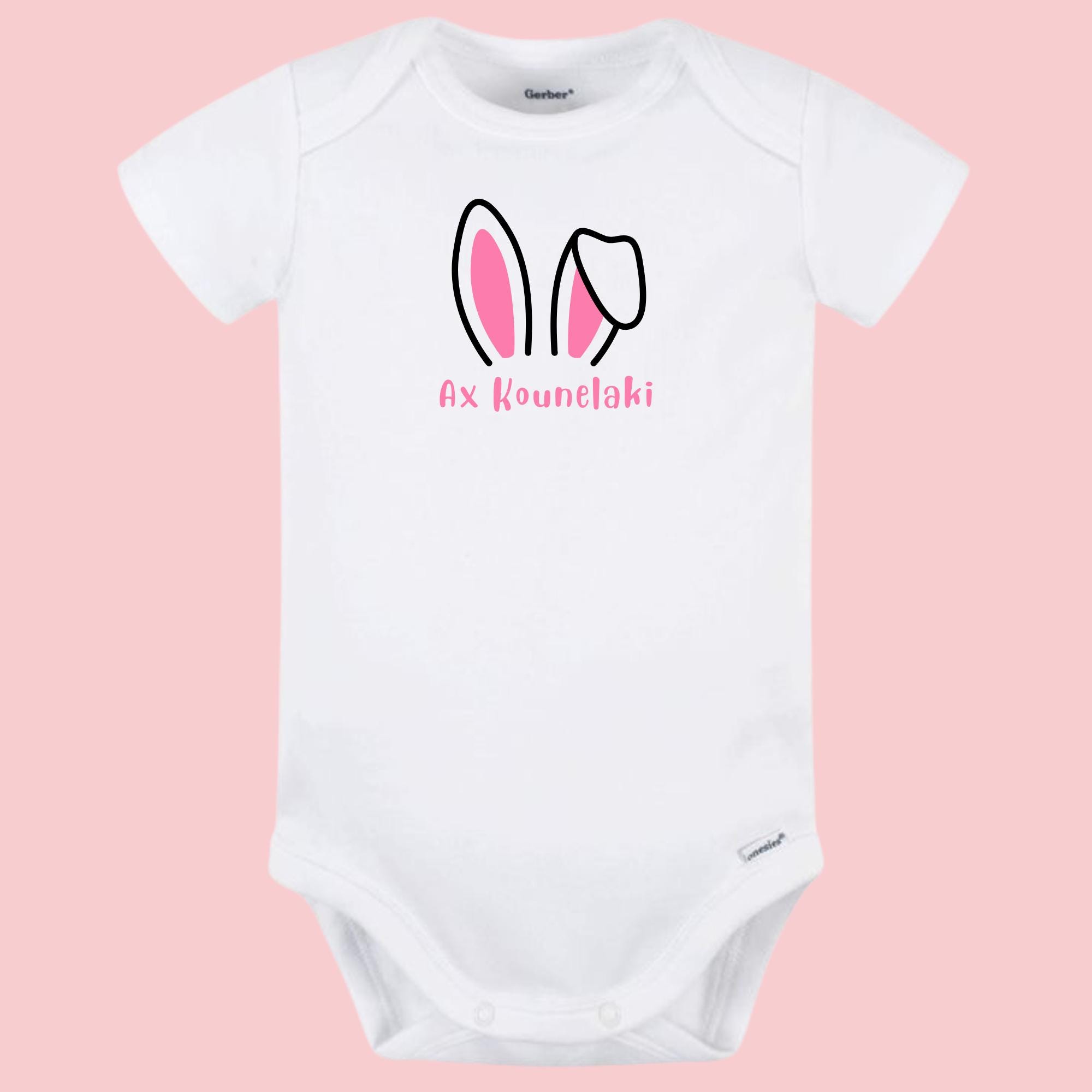 SUPER cute Ax Kounelaki bodysuit or t-shirt. These are available in baby bodysuits or toddler t-shirt. Who doesn't love this adorable children's Greek song. Uplift your child's wardrobe this Easter with this AX - KOUNELAKI design. Perfect to wear to your Pascha celebration. YIAYIA, PAPOU and your entire family are going to love this unique design.