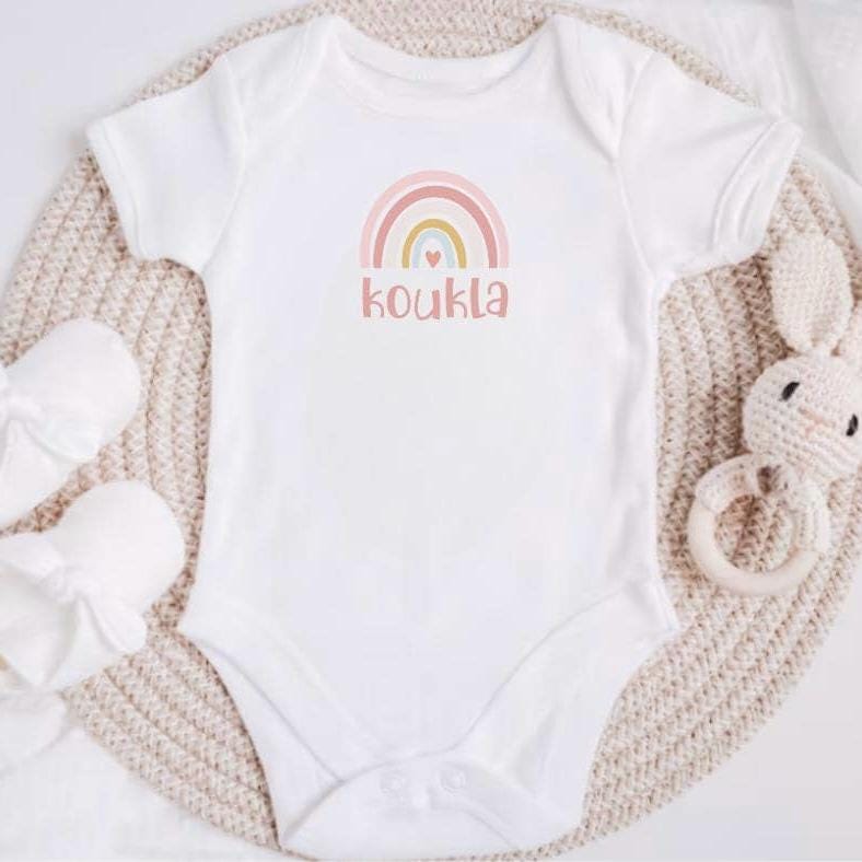 🎀Introducing our adorable Koukla baby onesie and tshirt for girls, the perfect way to celebrate your little one's irresistible charm and cuteness! Embrace their Greek heritage with this charming onesie featuring the word "Koukla" printed on the front.