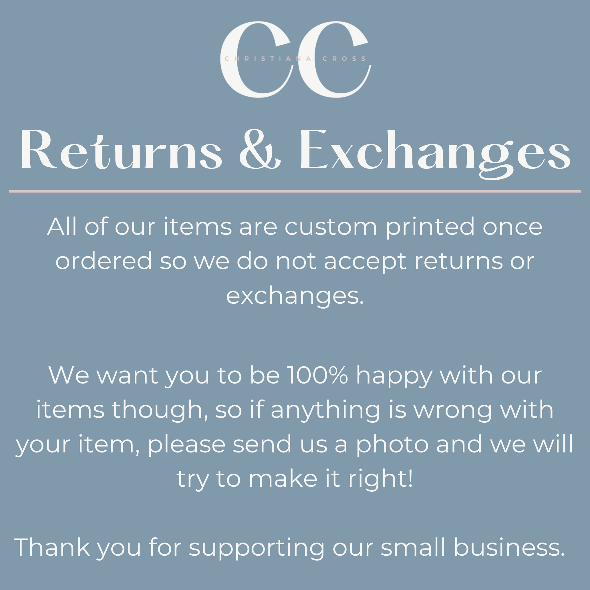 🎀🎀Please Note: All our items are made to order just for you. Because of this we do not accept returns or exchanges but please contact us if you have any issues order and we will do everything we can to help. Christiana+Cross