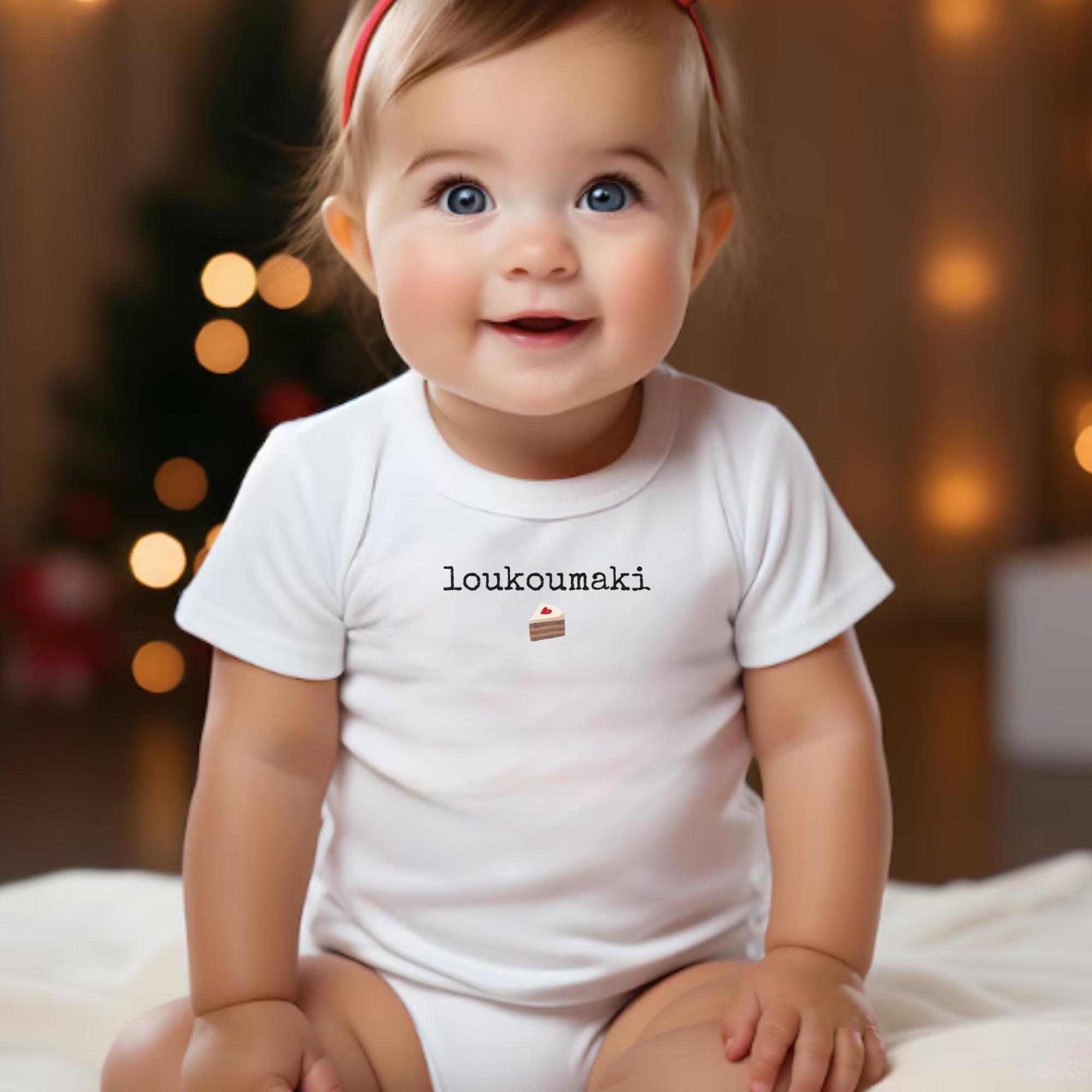 Perfect for your little one to wear - loukoumaki - or little sweetie 🍰 is a perfect gift for a Greek baby. This is the perfect addition to your stylish baby's onsie wardrobe. This is the PEFECT gift!