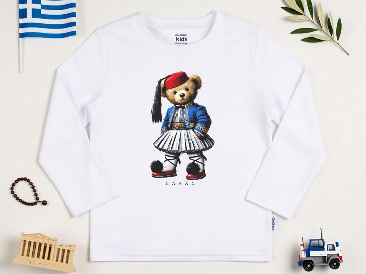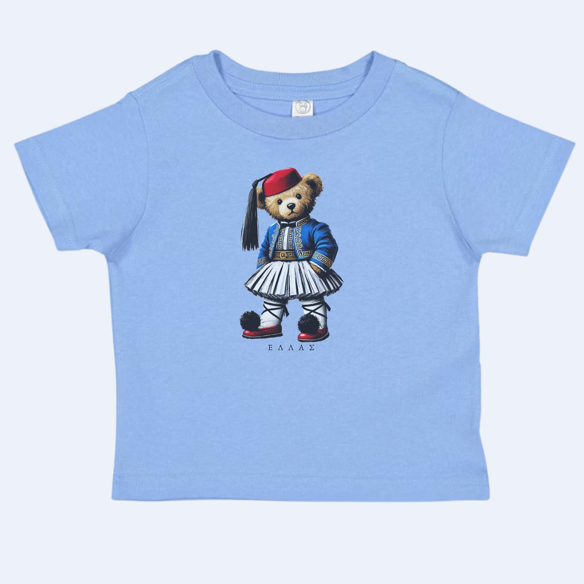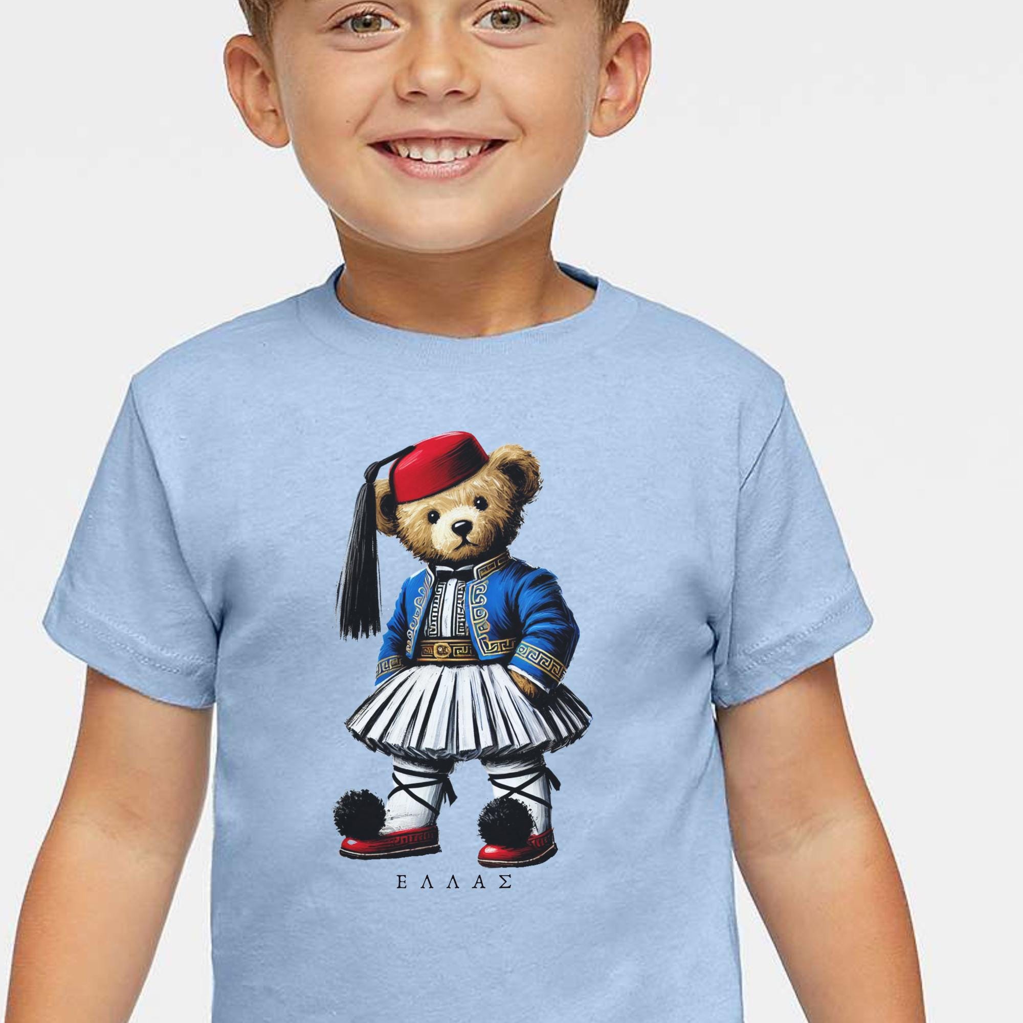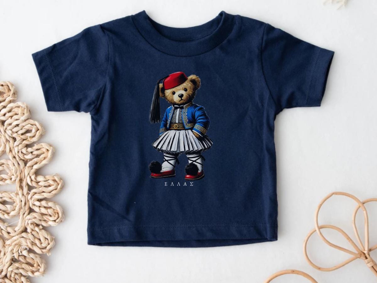 Celebrate Greek pride and heritage with this adorable and unique t-shirt featuring Theo, the beloved teddy bear dressed as a traditional Greek Evzone! Perfect for kids and adults alike, this design blends charm, history, and a touch of whimsy, making it a standout piece in any wardrobe.